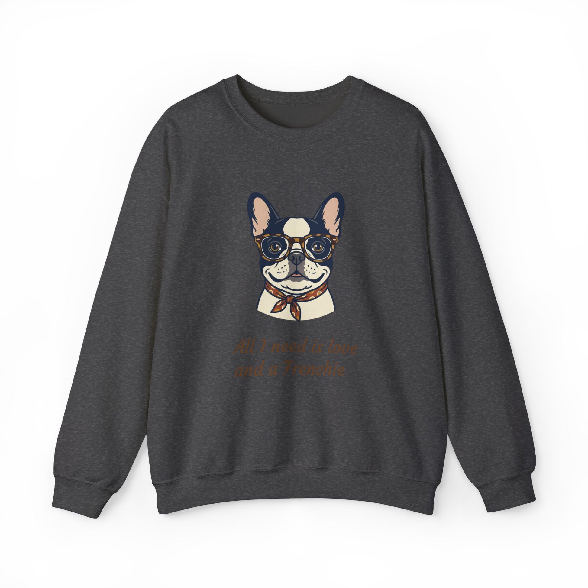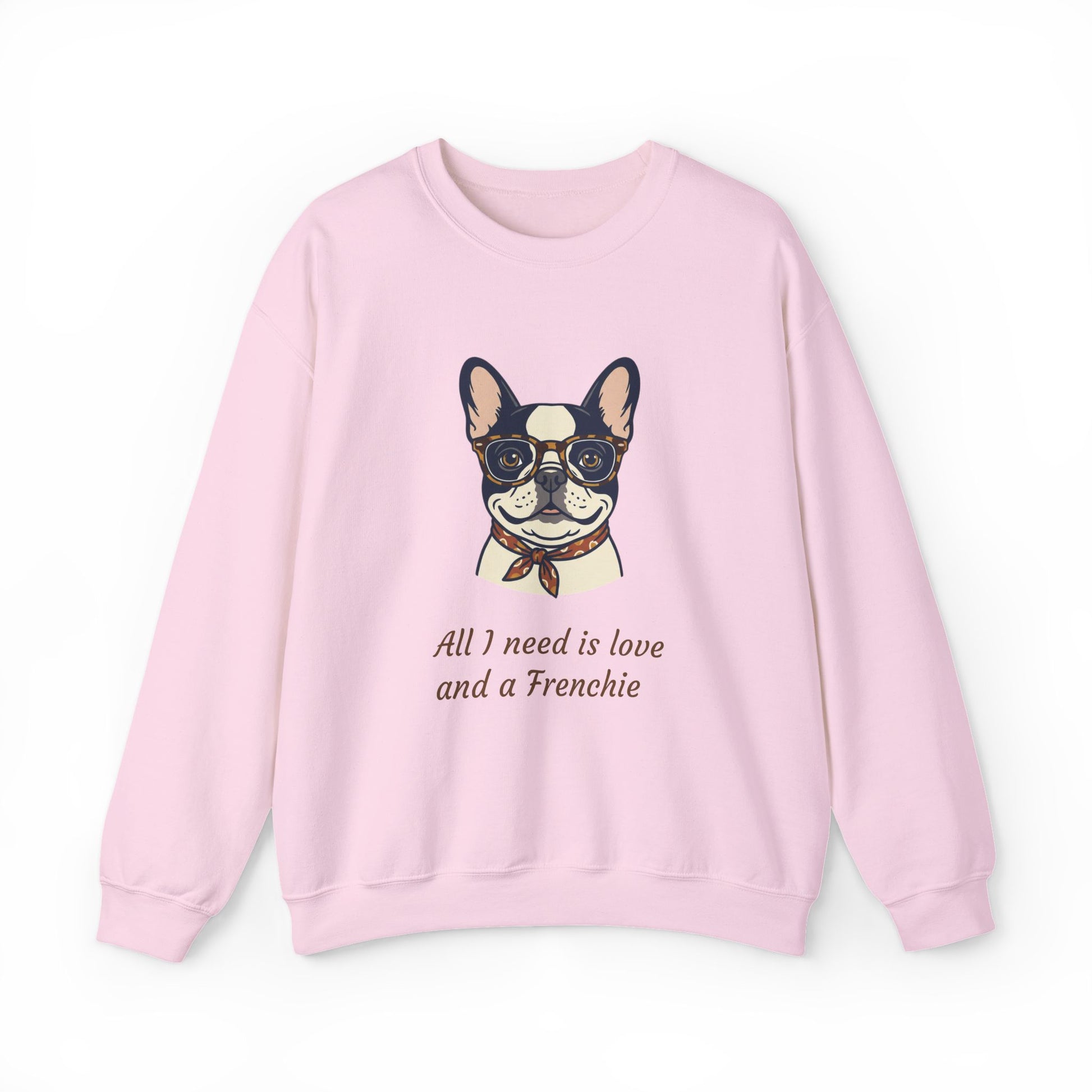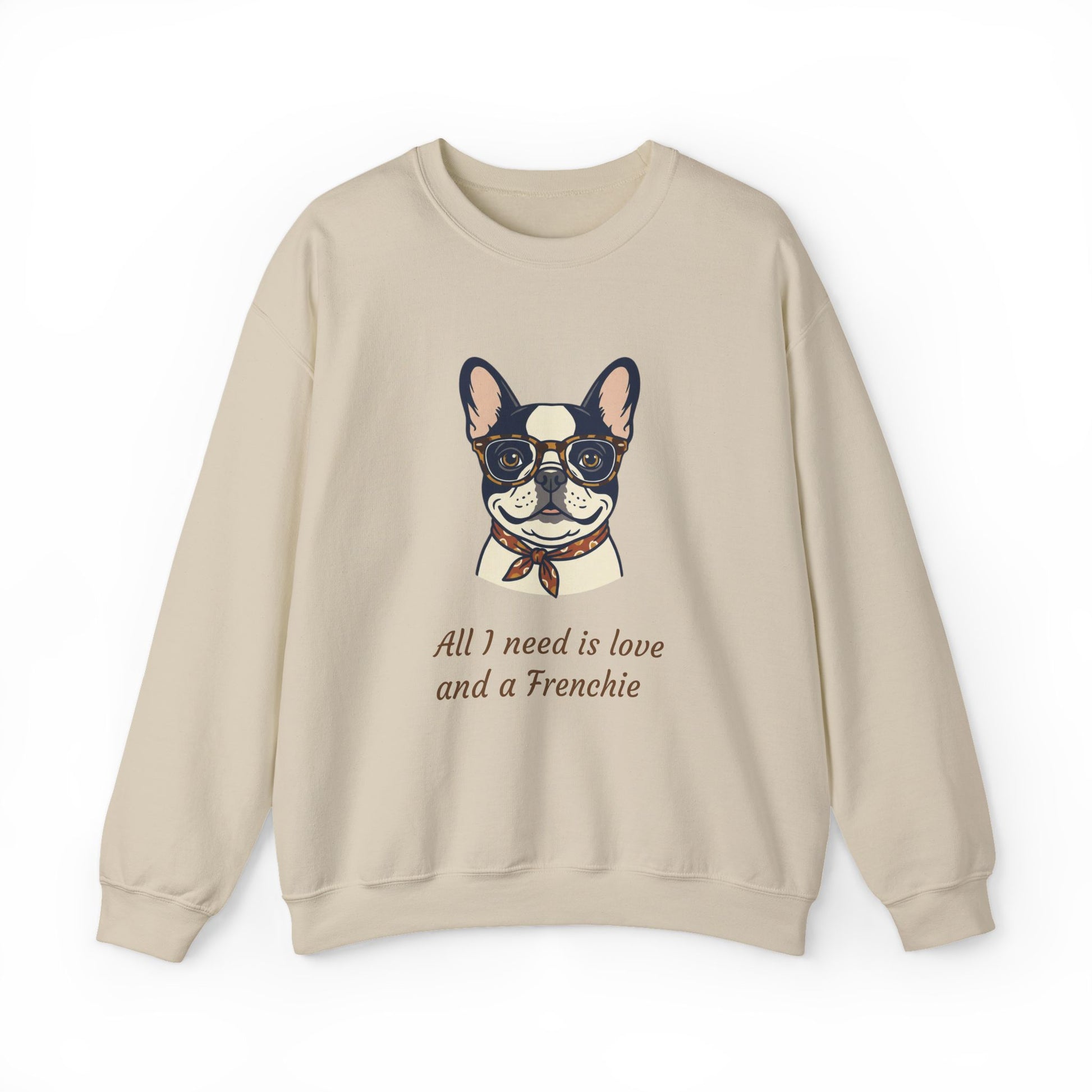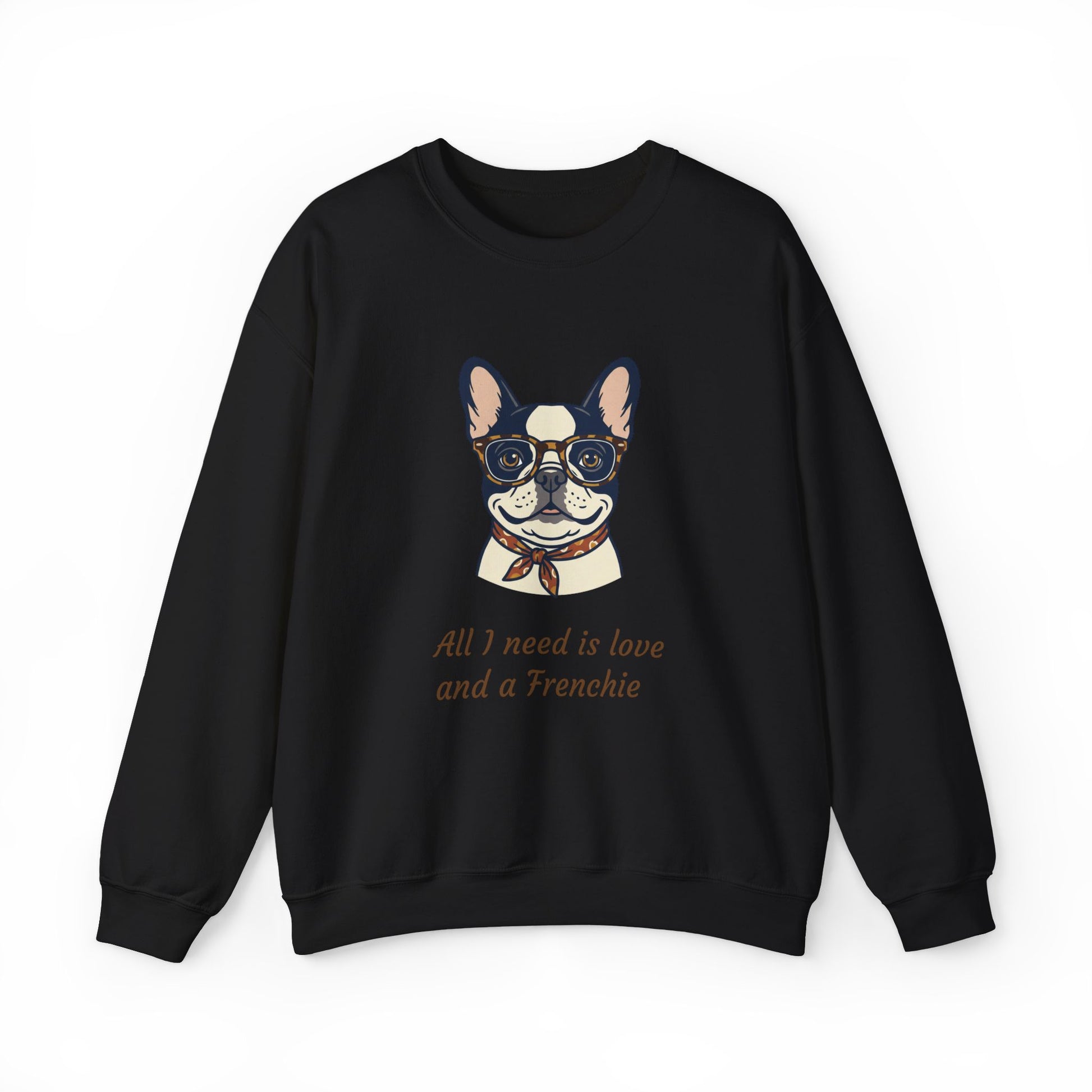 All I Need Is Love and a Frenchie Sweatshirt — French Bulldog with Glasses