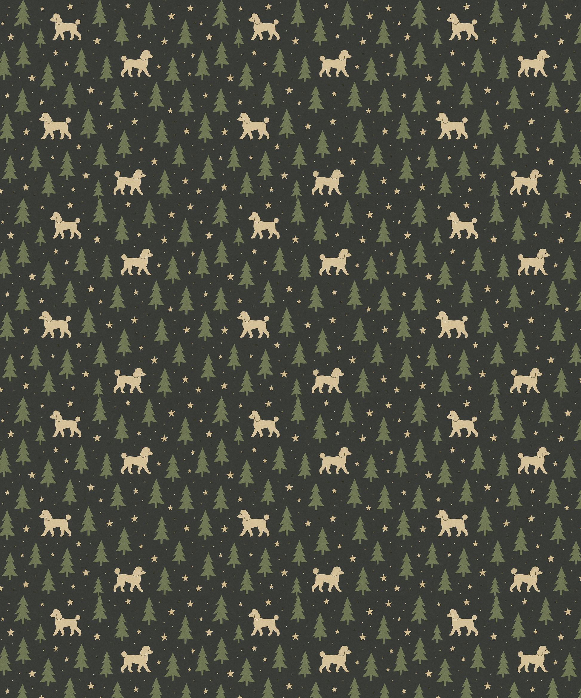 Deep, forest-dark green paper scattered with small poodles and twinkling stars — this wrapping paper brings a touch of whimsical woodland charm to gift-giving. The scene feels like a quiet evening walk through pines: playful poodles peeking between trees, constellations overhead, and a matte or glossy surface that makes the colors pop against ribbon and twine. Use the smaller sheets for jewelry boxes and handmade treats, or the long rolls for larger parcels and seasonal deliveries. The high-definition print on 90 gsm fine art paper lays flat and holds folds crisply, so bows sit cleanly and edges stay sharp. The subtle personality of the pattern says you chose something thoughtful and a little unexpected for birthdays, winter gatherings, housewarming surprises, or cozy, handmade exchanges.