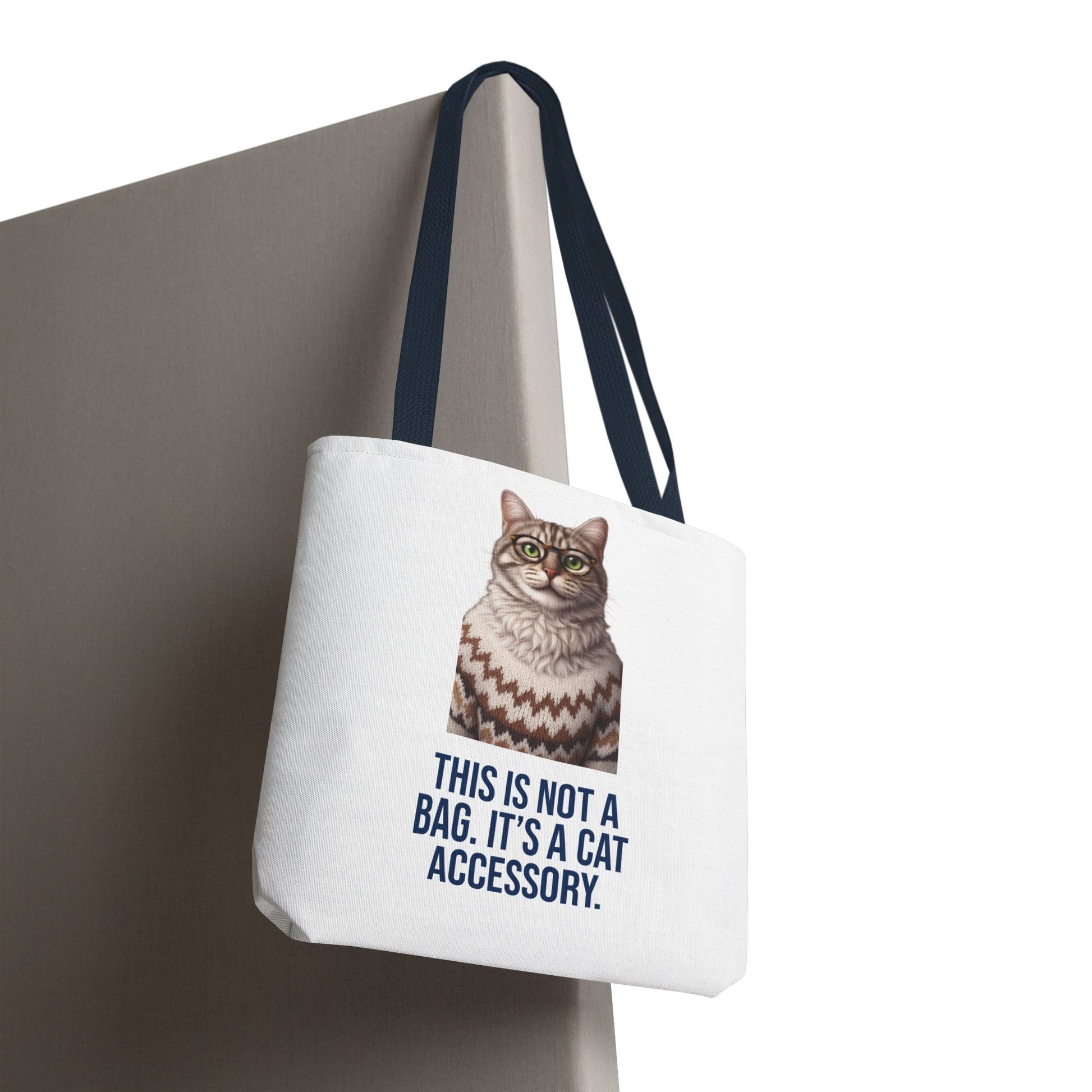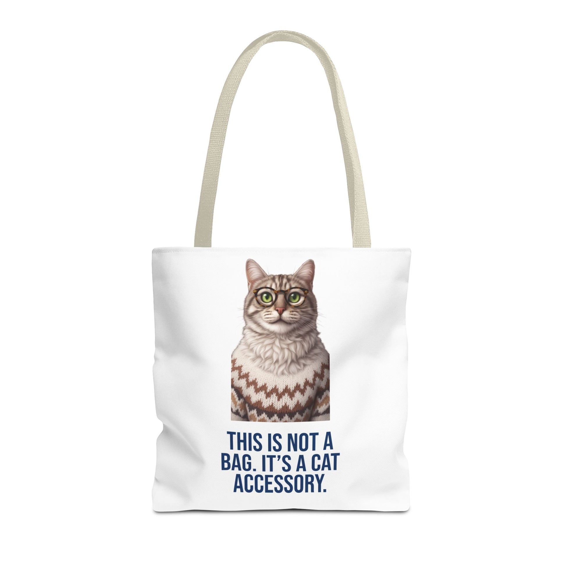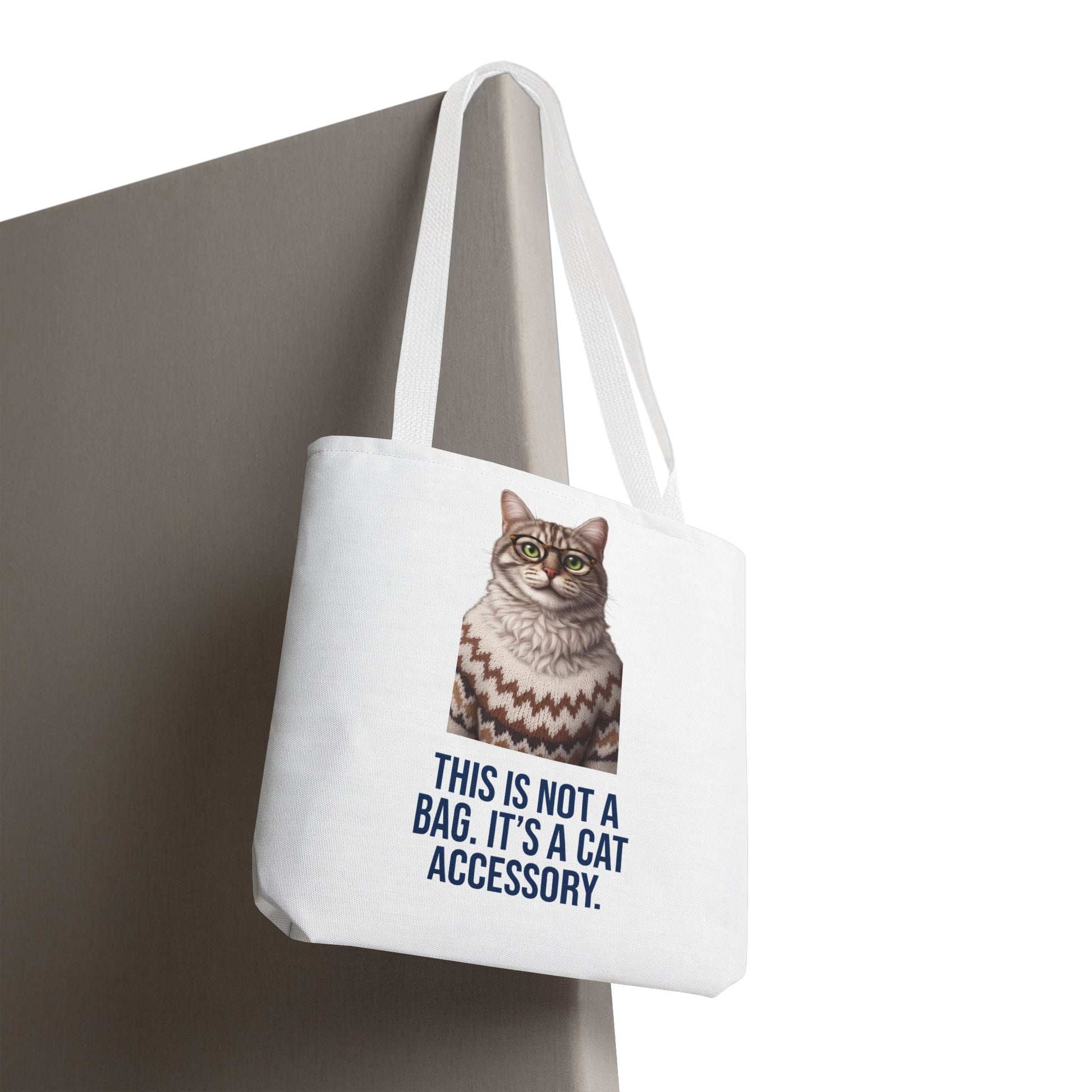 Tabby Cat with Glasses & Nordic Sweater Tote Bag — "This Is Not a Bag. It's a Cat Accessory"
