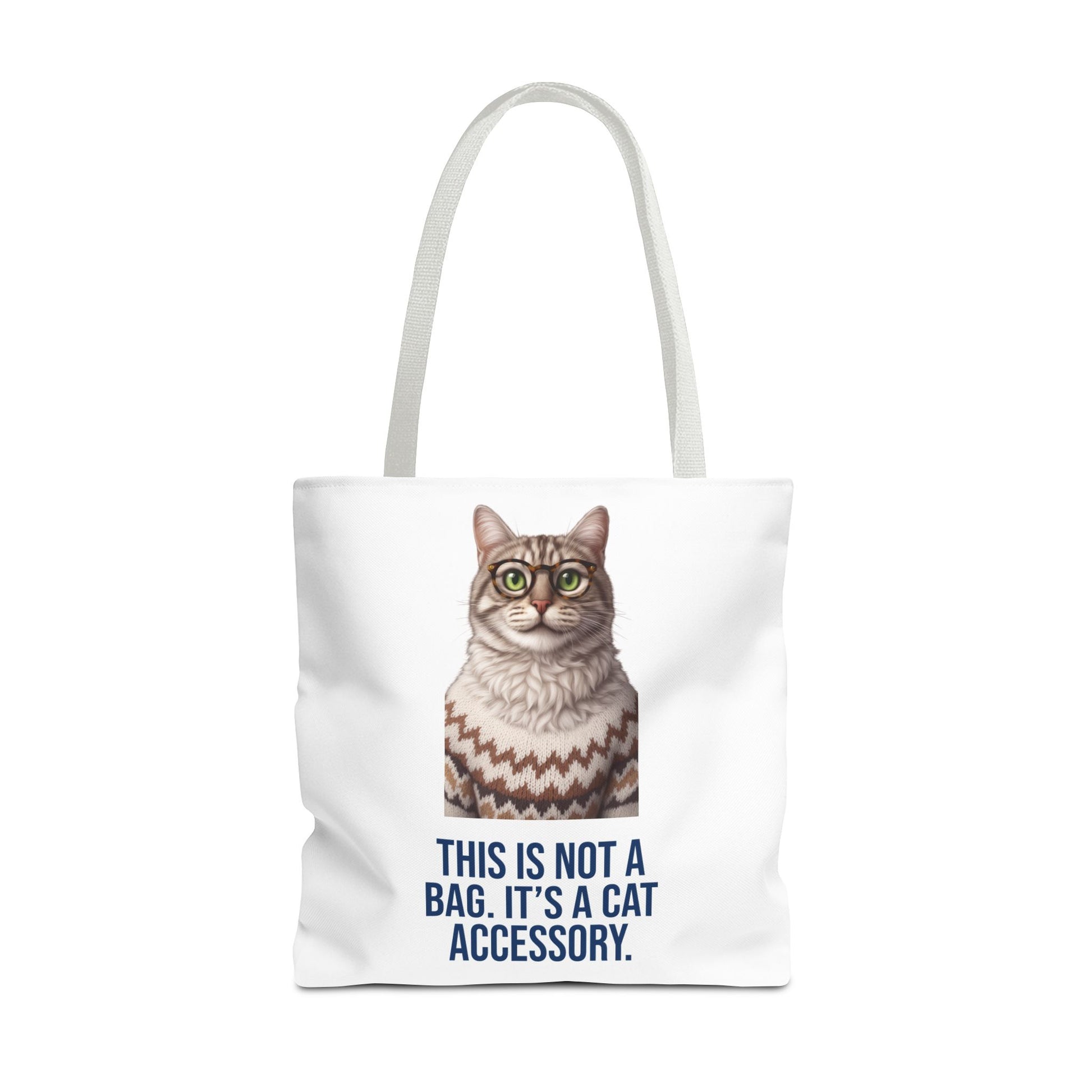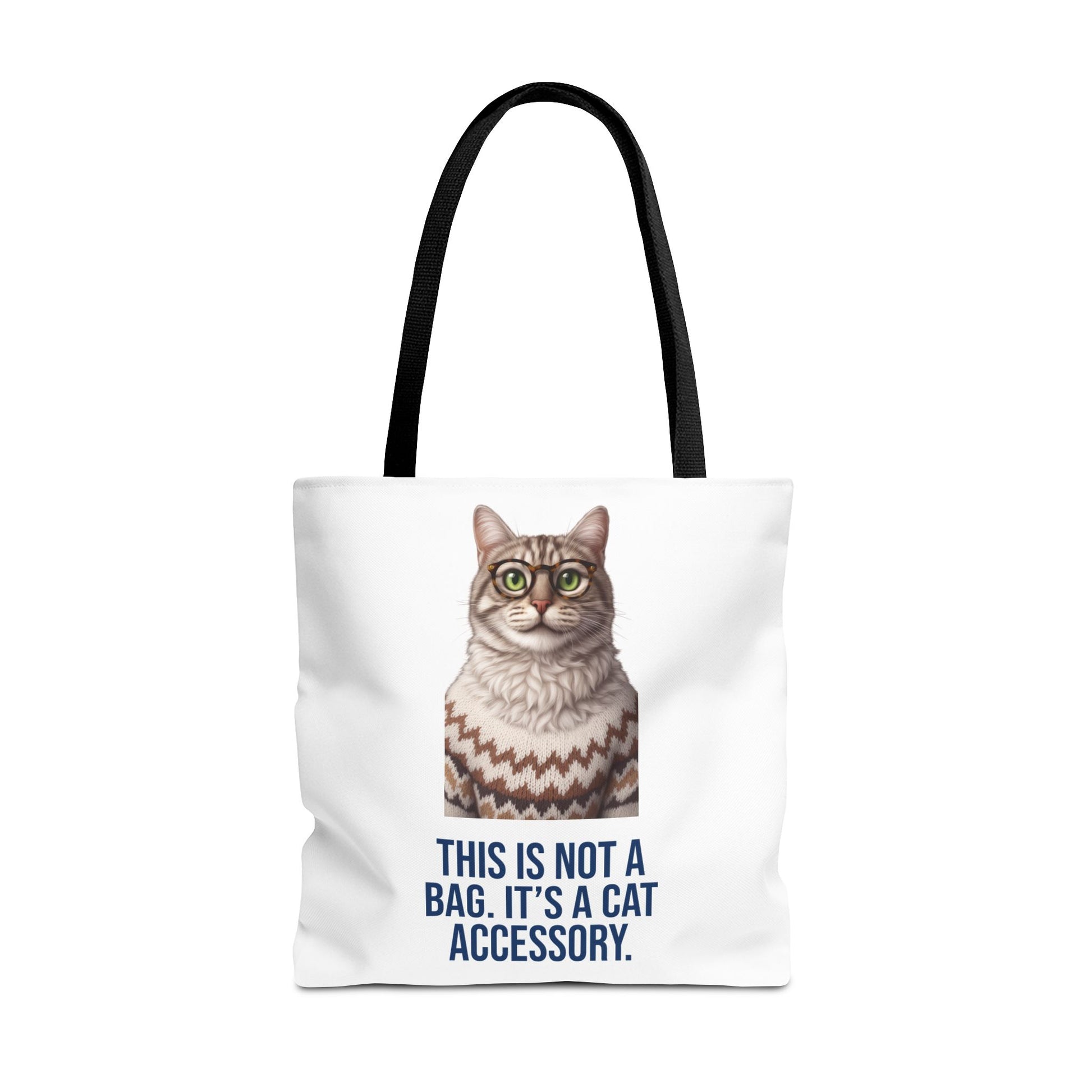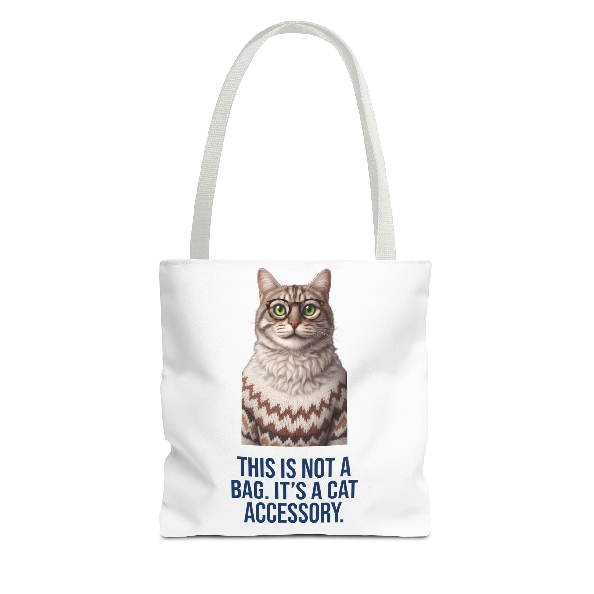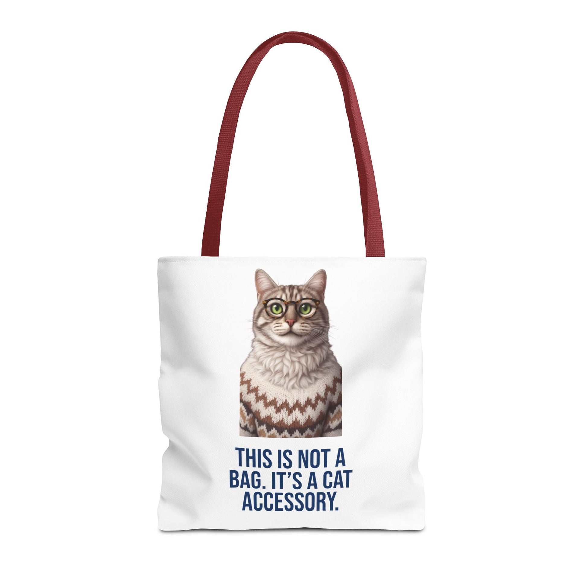 Tabby Cat with Glasses & Nordic Sweater Tote Bag — "This Is Not a Bag. It's a Cat Accessory"