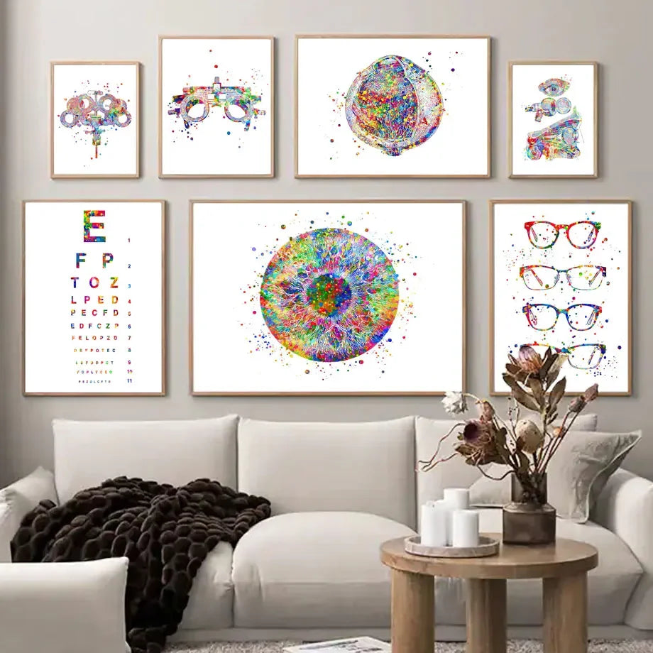 We specialize in optometry lifestyle décor and optical art prints that combine professional elegance with contemporary design. This artwork isn’t just wall decoration – it’s a bold statement celebrating the beauty of vision and science.